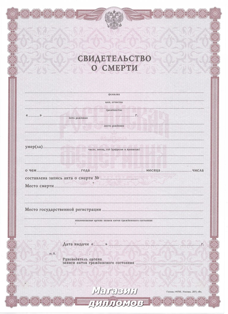 Заказ Свидетельства о смерти